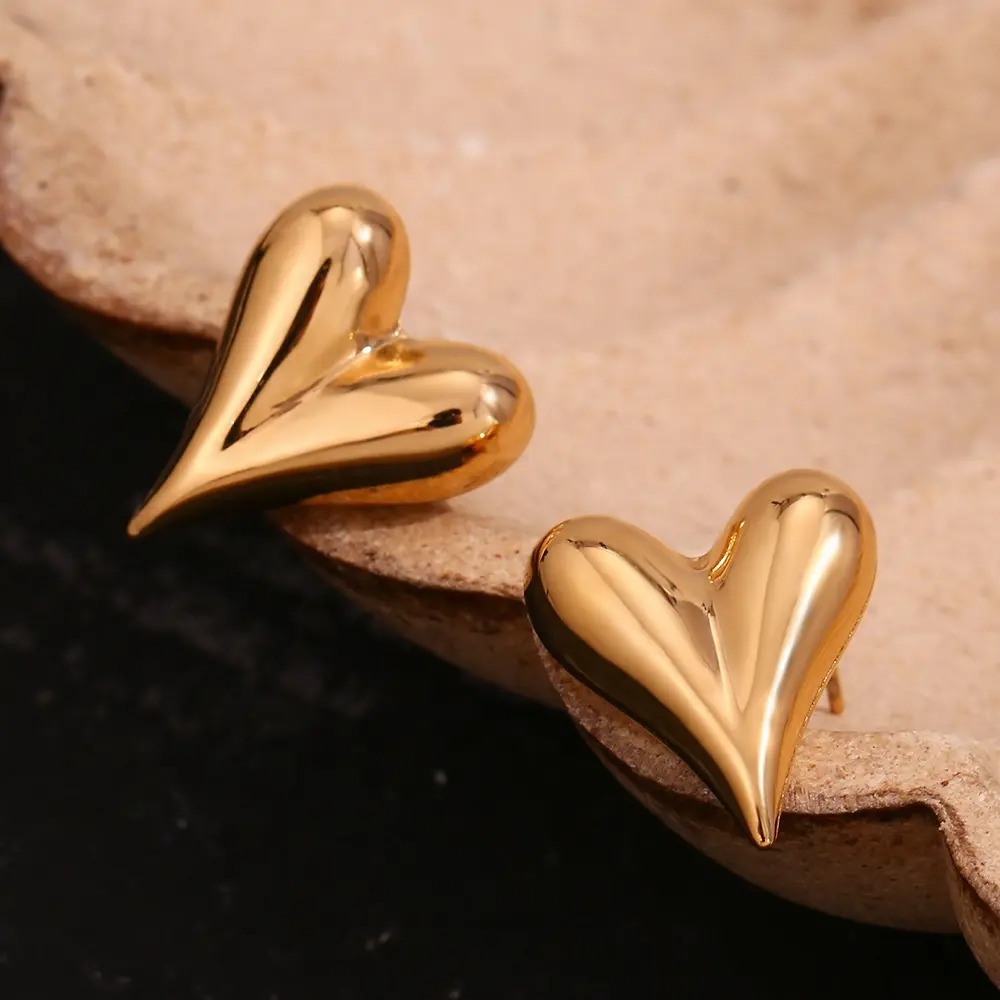 يتميز هذا الزوج من الأقراط الذهبية بتصميم رقيق ومعبر على شكل قلب مصقول ولامع. تصميم القلوب ثلاثي الأبعاد يضفي عليها حجماً وجاذبية، ويعكس الضوء بنعومة مما يجعلها تبدو أنيقة وملفتة. هذه الأقراط مثالية لإضافة لمسة من الرومانسية والحب إلى أي إطلالة، وهي خيار رائع للارتداء اليومي أو كهدية مميزة لشخص عزيز. مزودة بقفل دبوس آمن ومريح للارتداء.