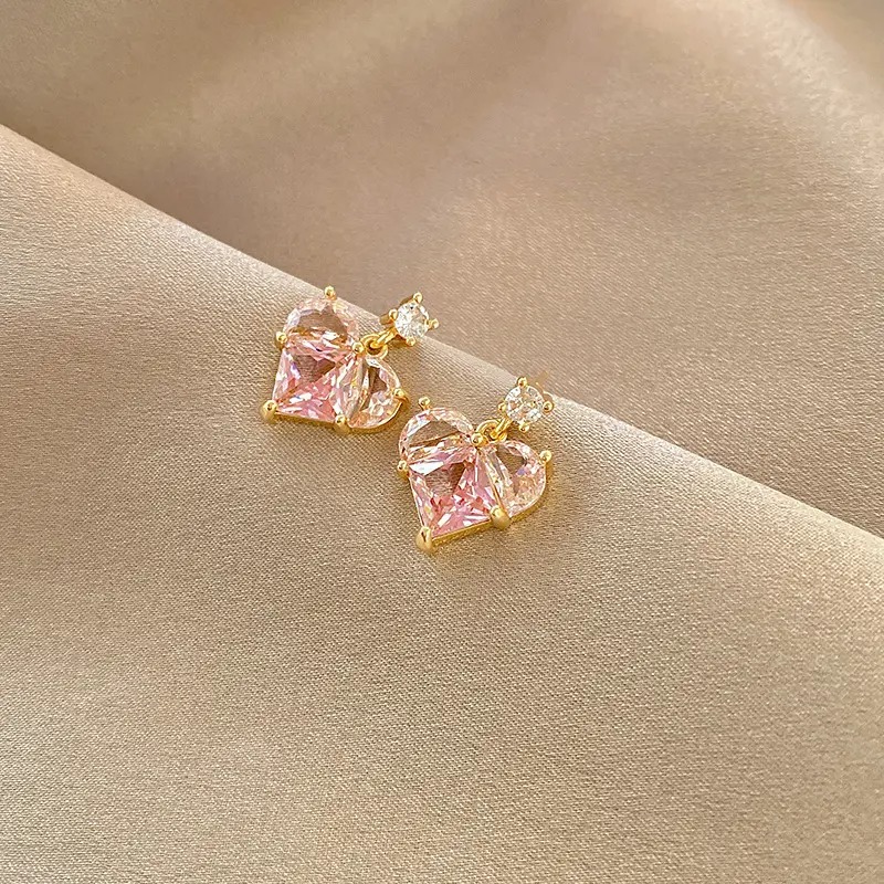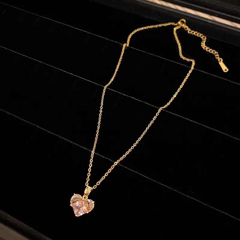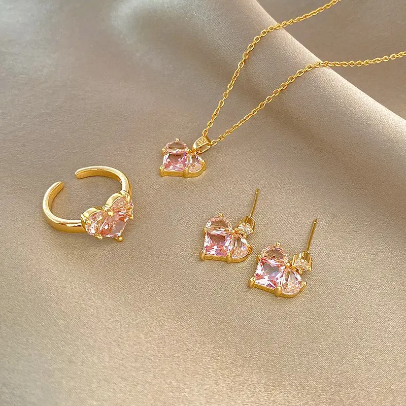 طقم قلب الكريستال الوردي